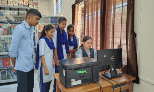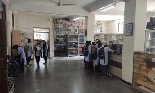 Our Library is the heart of our college. It’s totally New and fantastic building measuring 4720sq feet size. Reading room are separated from the main library Hall for boys and girls. Reading rooms for staff members is provided in the main library hall. The library is well ventilated and number of lightning points is provided for sufficient light in the library. The Library has been automated using elib library automation software & computerized with Barcode on books, Borrower’s Card of students and staff. Separate Reference Section has been provided for Staff and Students. Separate Staff Sitting Facility with Satyashodak Study Centre. The biometric machine used for monitoring the students and staff footfall login. The whole Library is under CCTV surveillance. The NAAC Peer Team Visited the Library Department on 5th August 2022, the team were very pleased with the work of staff, collection of books and facilities provided to the students.