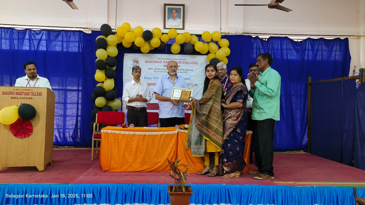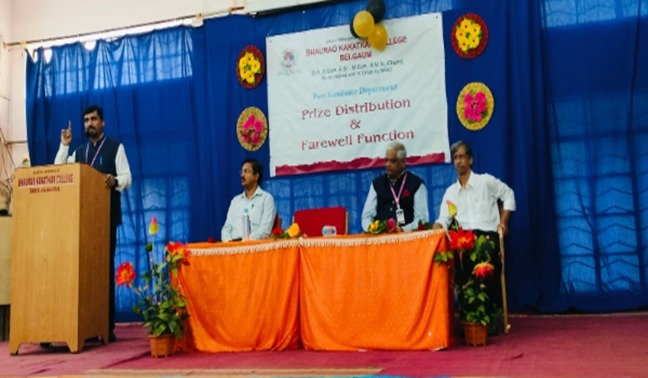 The P.G. Department of M.Com and M.Sc.Chemistry jointly organized the Annual Prize Distribution and Farewell Function on . The Chief Guest, Dr. Raviraj Kulkarni of GIT, Belagavi, highlighting his achievements and contributions. The function was presided over by Principal Dr. S. N. Patil.